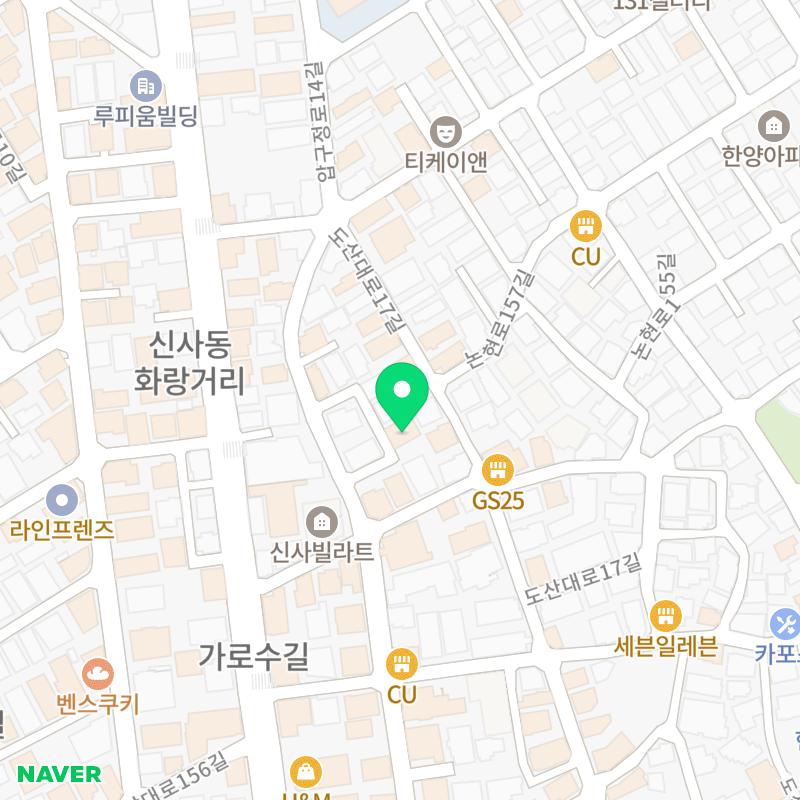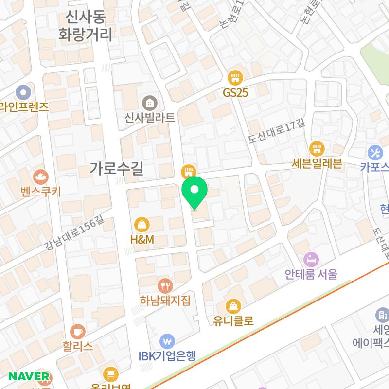 또한, 신사역 8번 출구에서 도보로 약 8분 거리에 위치해 있어 가로수길 산책과 함께 방문하기 좋은 장소입니다.